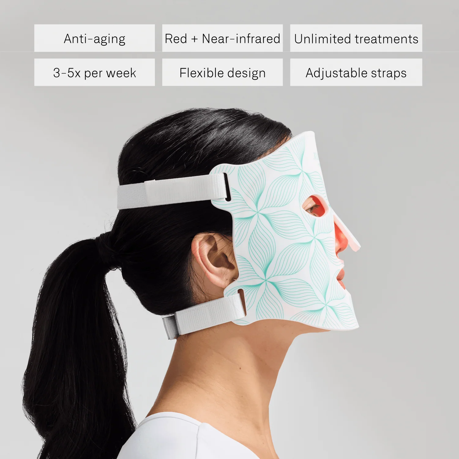 FDA-cleared red + near-infrared LED mask for full-face wrinkles. Flexible silicone with 132 medical-grade LEDs for 10-minute treatments, 3-5 times per week.